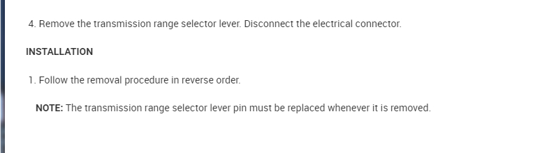 Great info. I think you are referring to the transmission range selector lever. I attached the procedure for this.