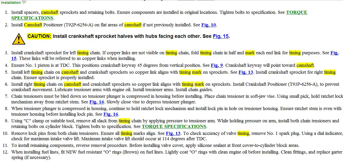 I am attaching the installation instructions for the timing chain and the FIGs you will need to align the camshafts.