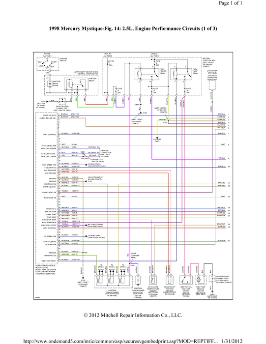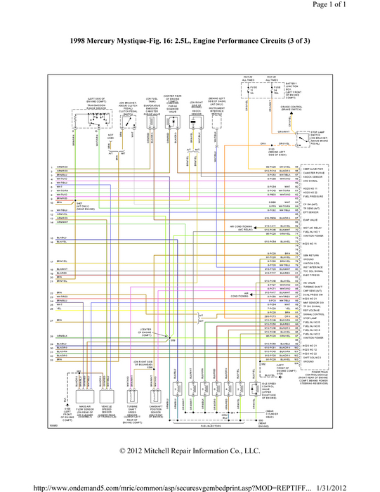 ENGINE CONTROLS - TESTS W/CODES - 2.5L -1998 Mercury Mystique