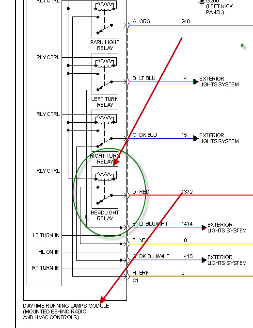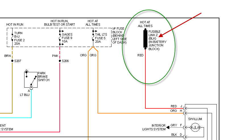 with the head lamp switched to park lamp position ....pins A,D,H pwr... I have not located the Fusable Link as of yet.