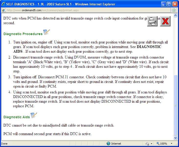Its going to be down to the wires pcm or selector switch itself.It says to check adjustment but i feel those are your possible causes.The problem is the first step is to when its acting up to use a scan tool that can read live transmission data on that car you would make sure that the pcm was reading all the gears correctly on the scan tool screen instead of invaild or grounded.If you don't have access to that scan tool the only thing i think you can really try is what i posted when its acting up and the code is active.Check those wires to see if they have the voltage they say with the key in the run position and also inspect the tiring connectors etc.If all that checks out then replace the selector switch.If you replace the selector switch let me know so i can tell you how to adjust it.The selector switch is right below the brake master cylinder where the shifter cable connects to the transmission.The only other choice you have is to take it somewhere to have it looked at.