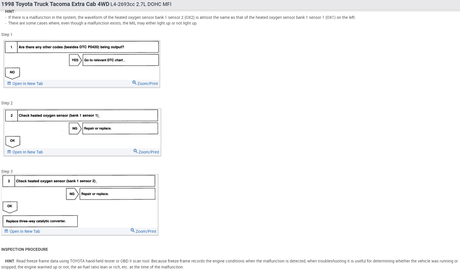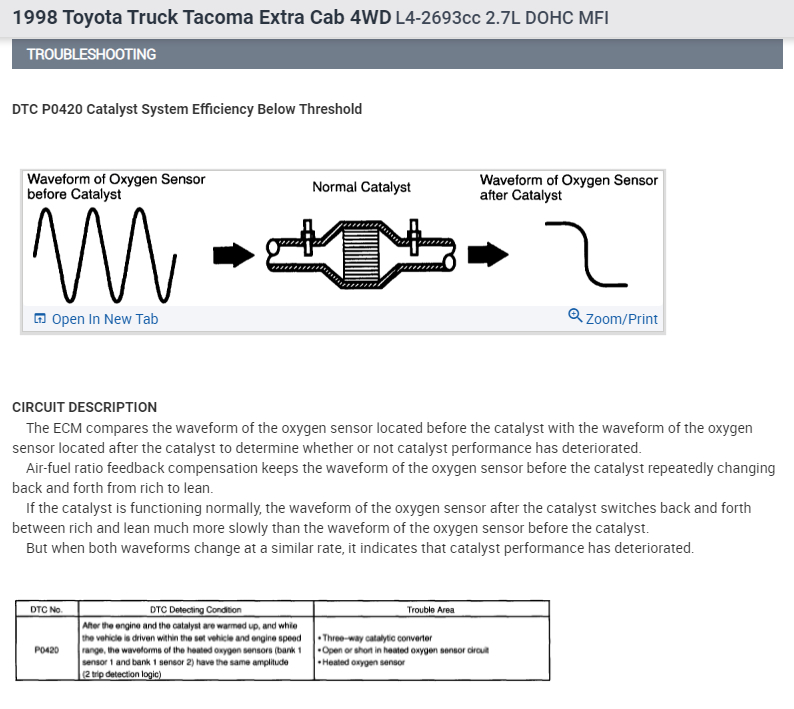 I have a P0420 OdbII error Code P0420 means "Catalyst System Efficiency Below Threshold (Bank 1)"