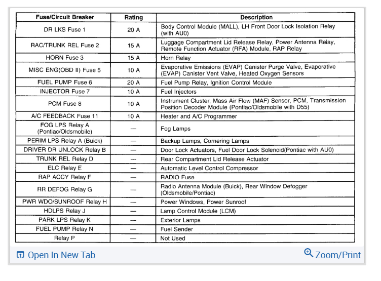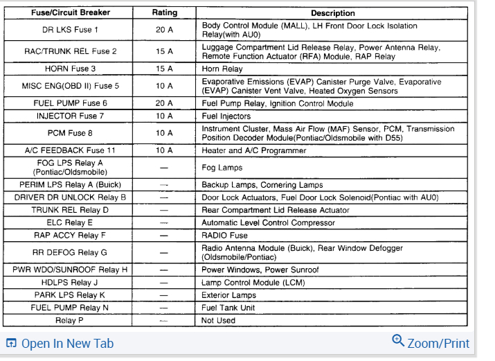 i have a 1994 buick lasabre that i thought had a bad fuel pump but now i believe it may be the relay i have found the location of the relays for the car but there are six relays in that location 5 gray and 1 black and there are no marking to tell which is the relay for the fuel pump how can i find the right one ?
