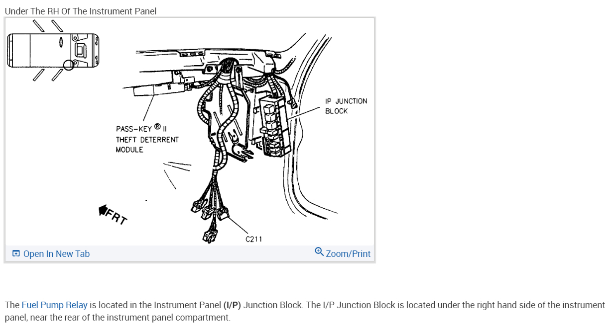 Here is the location of the fuel pump relay (below) with a guide to help test it.