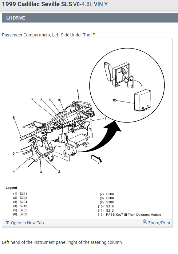 That module is located on the left hand side of the instrument panel, right of the steering column (see diagram).