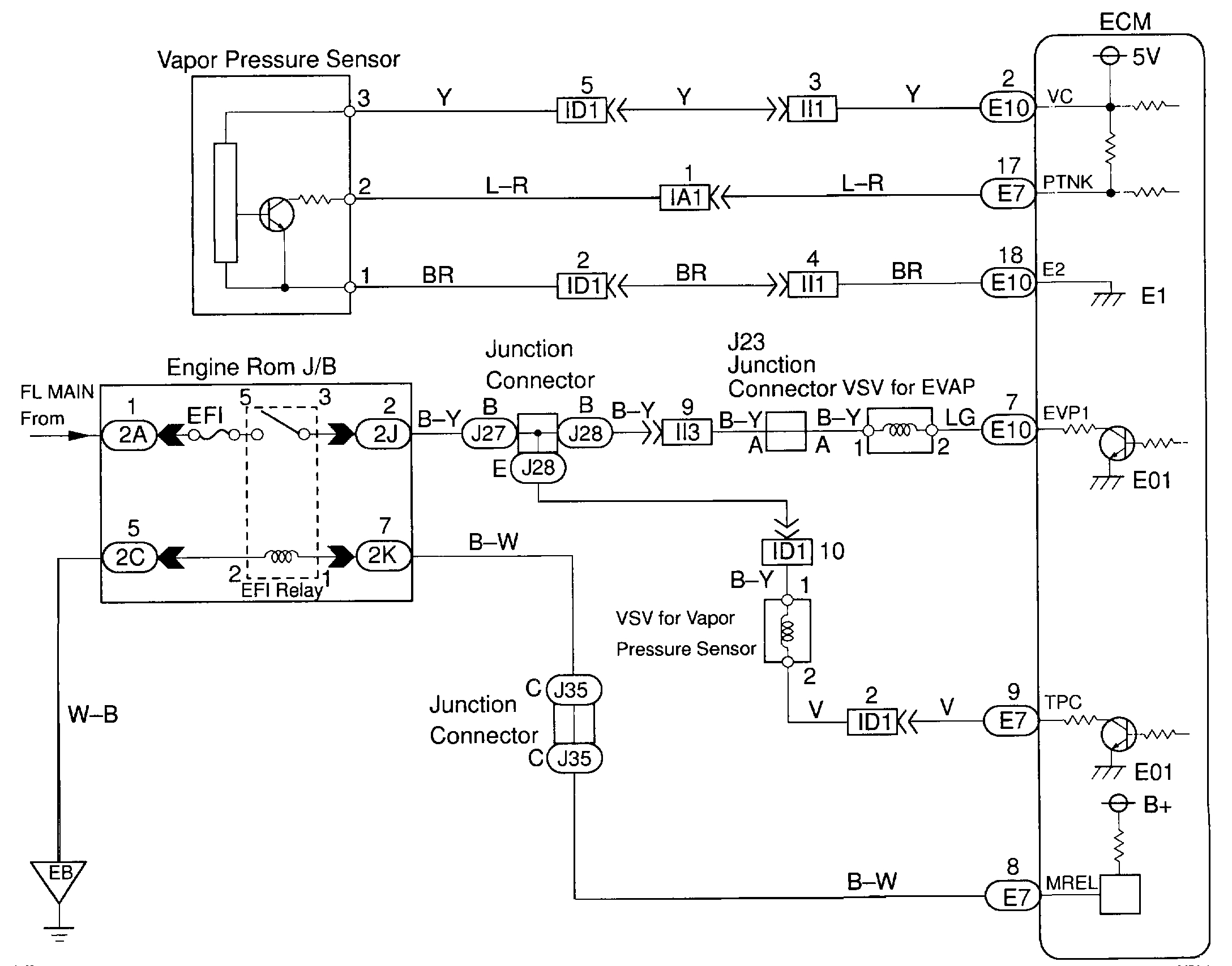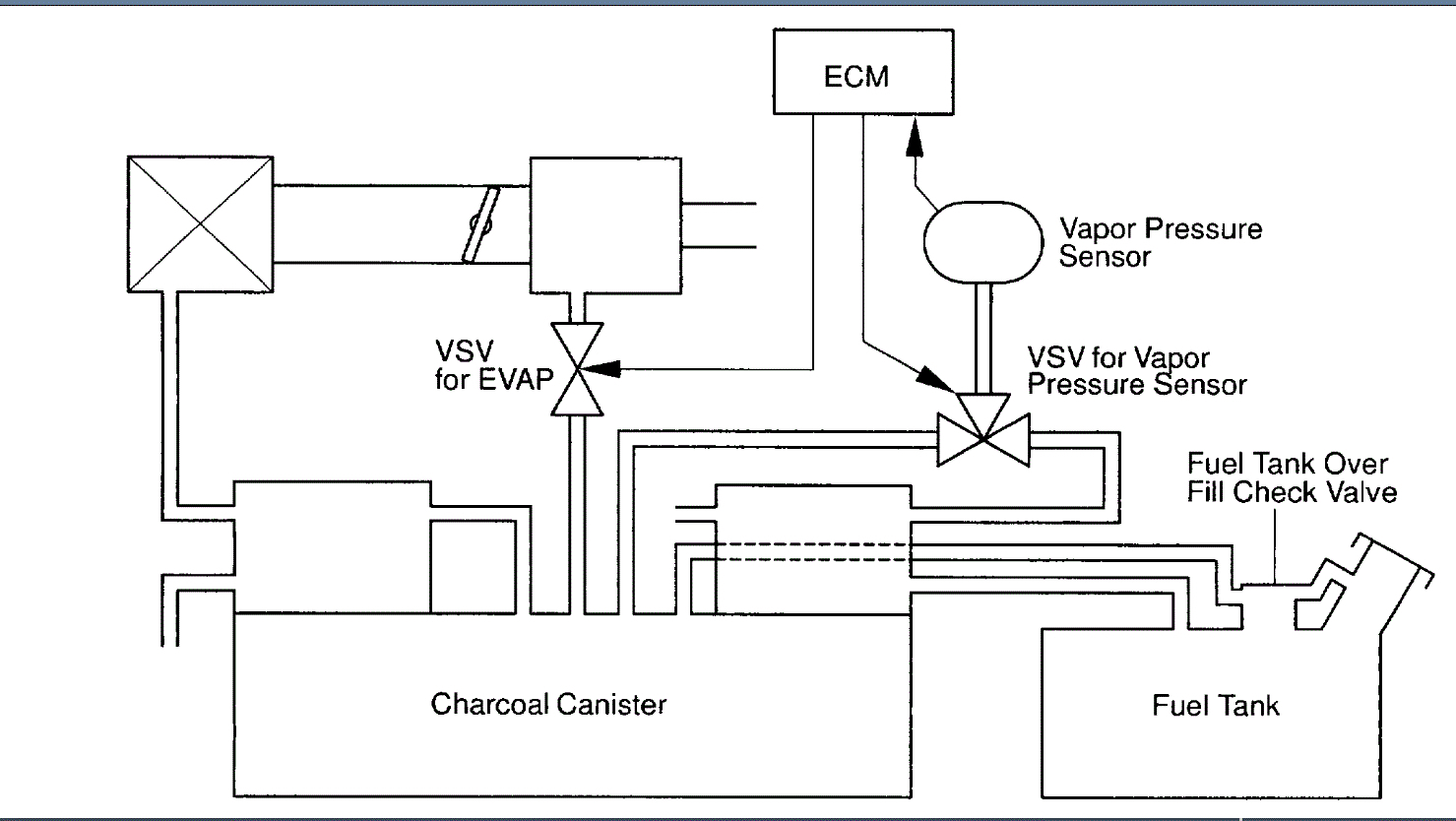 The vapor pressure sensor and VSV for vapor pressure sensor are used to detect abnormalities in the evaporative emission control system.