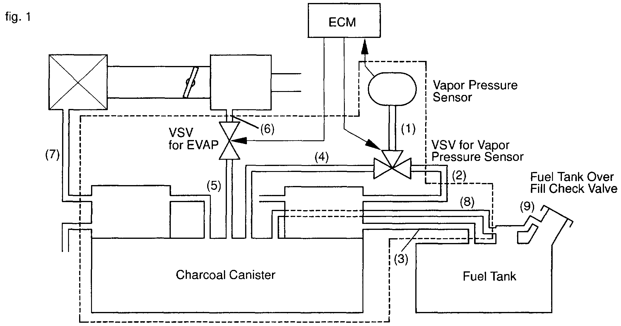 The ECM decides whether there is an abnormality in the evaporative emission control system based on the vapor pressure sensor signal.