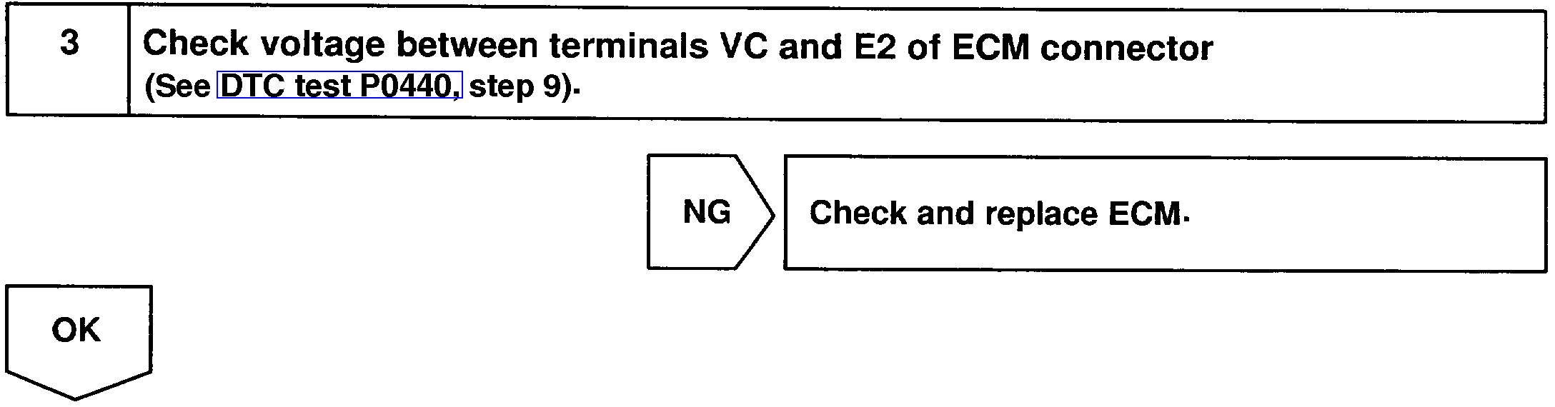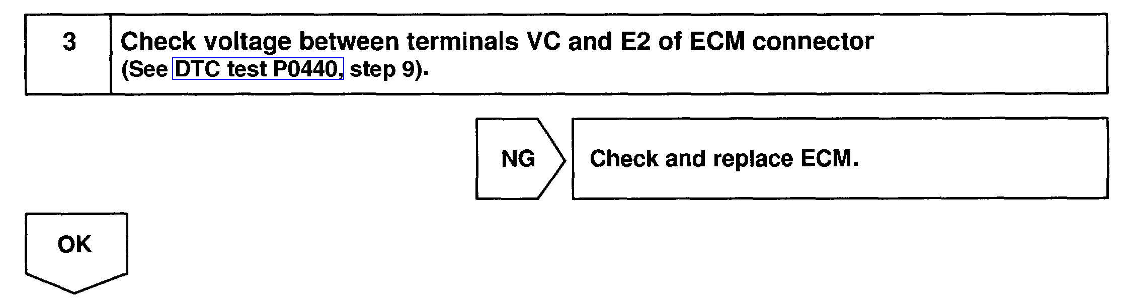 - If DTCs P0441, P0446, P0450 or P0451 is output after DTC P0440, first troubleshoot DTCs P0441, P0446, P0450 or P0451. If no malfunction is detected, troubleshoot DTC P0440 next.