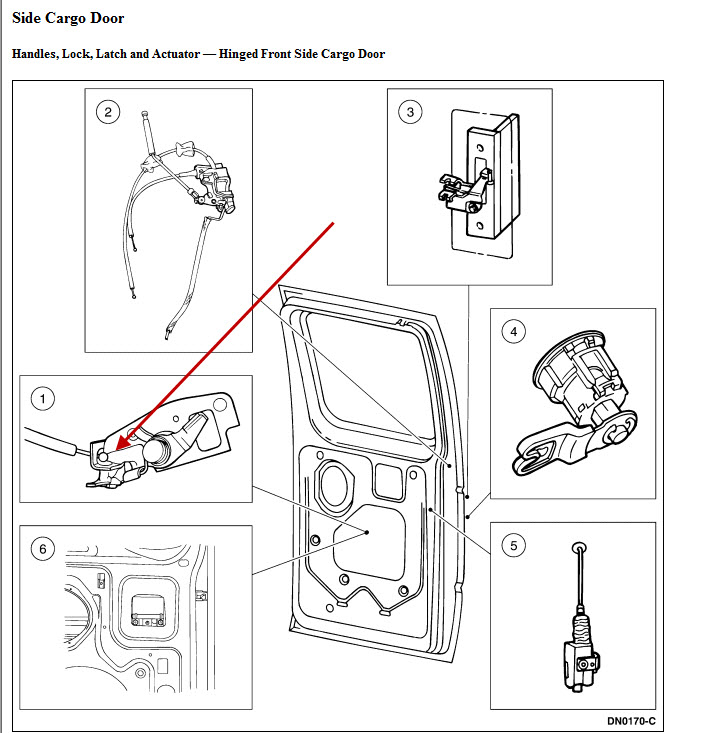 I have a 1999 ford e150 cargo van. The cable bracket for the exterior door handle has come loose (bracket looks to have a broken spot weld on it) and the cable (with bracket still attached) is dangling in the door cavity. I cannot find where the bracket would have been mounted, nor where the cable's ball end would connect. I intend to bore out weld and put bolt in it's place, if I can find where it does attach. I went to the Ford dealership (who volunteered to give me a copy of the diagram for the assembly) but found I had the wrong diagram when I got home.