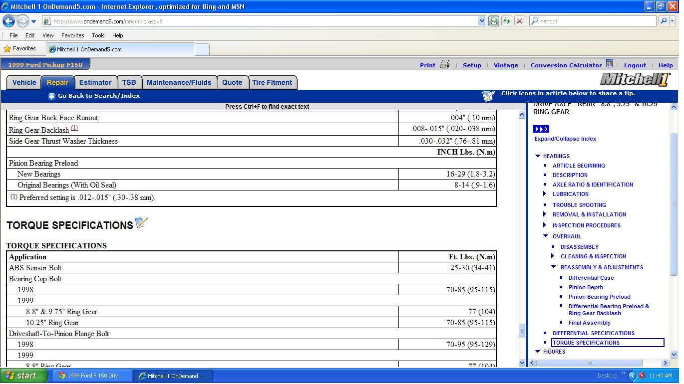 IN THE "MITCHELL I" SNAPSHOTS THE CORRECT SPECS ARE GIVEN FOR THE WHOLE PROCESS........."I'D SAY YOUR APPROACH YOU NEED THE 4TH MITCHELL DIAGRAM (TOP CHART, "PINION BEARING PRE-LOAD"---NEW BEARINGS IS 16-29 IN/LBsUSED IS 8-14 IN/LBs.