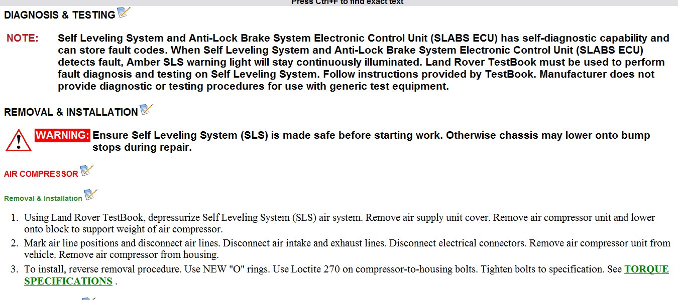 Here is a Diagram of the rear suspension and a diagnostic check list for the compressor.
