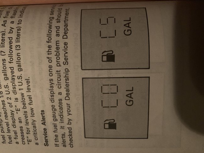 ^ GAUGE - FUEL - ELECTRONIC - "CO" DISPLAYED IN ELECTRONIC CLUSTER WITH TWO TOP/BOTTOM BARS HIGHLIGHTED - VEHICLES BUILT BEFORE 1/1/94