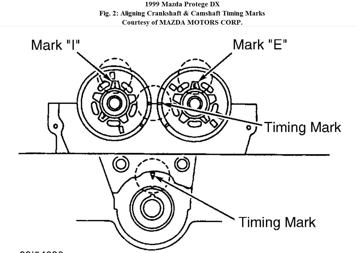 how should timing marks line up on a 1999 mazda protege 1.6 liter?