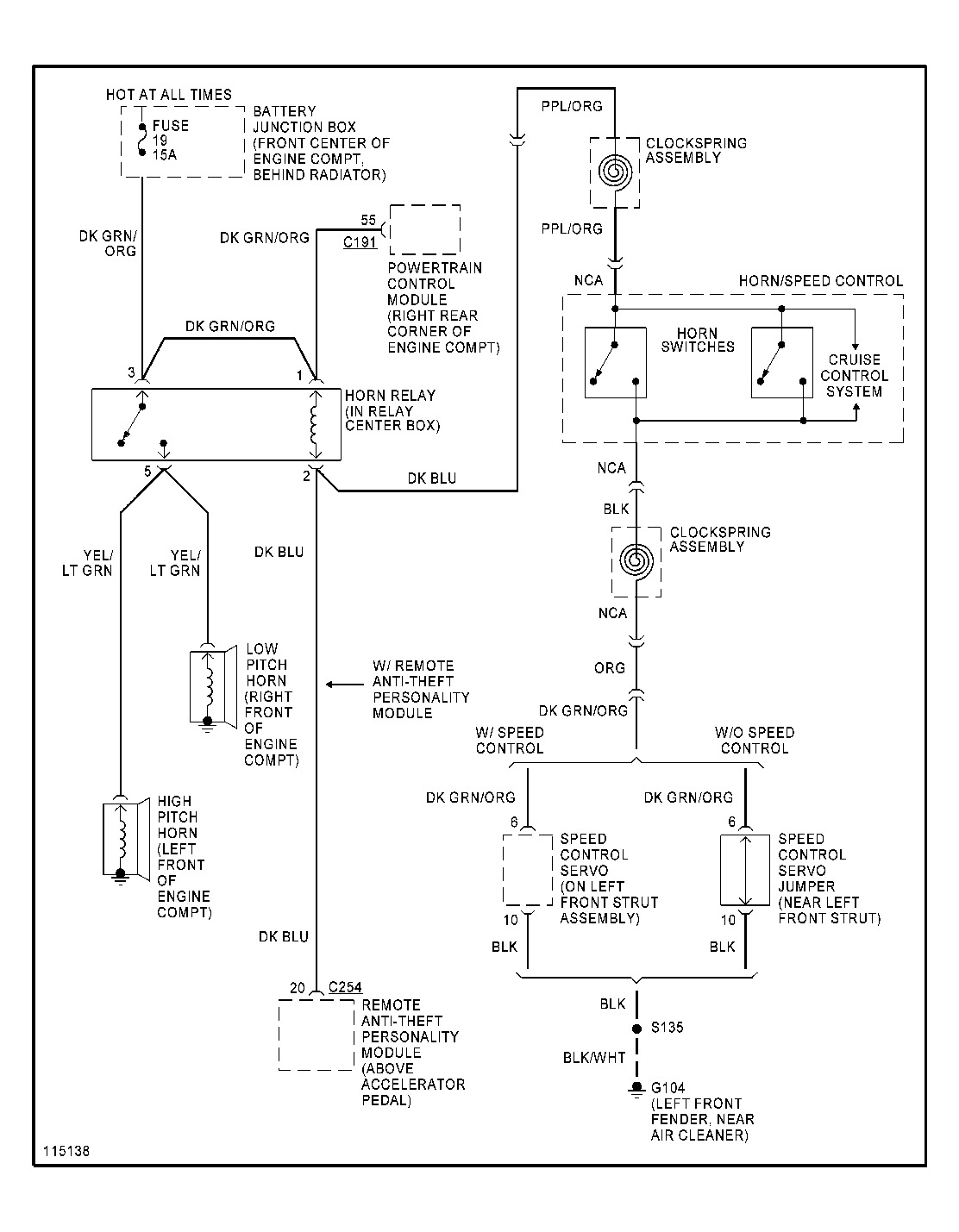 IF THE HORN ITSELF IS IN WORKING ORDER (YOU MAY BE ABLE TO JUMPER OFF OF THE BATTERY TO TEST IT) , THIS DIAGRAM WILL SHOW OTHER STUFF THAT COULD BE WRONG....SUCH AS A RELAY, ETC