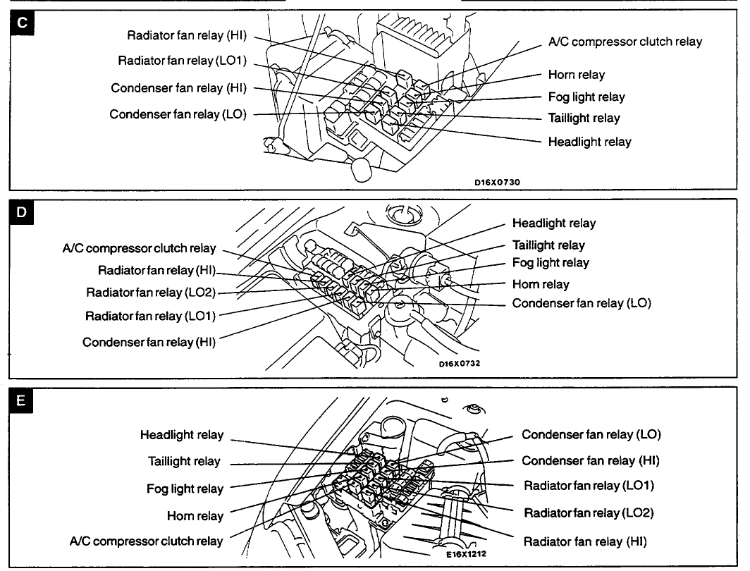 My 1999 Mitsubishi Eclipse GS has suddenly developed a problem. Got home from work & notice temp a little higher then normal. Discovered that the fan is not turning on at all. Radiator is good & so is the hose. Wanted to check the fan relay switch but can't find it. Where is it located on this car?