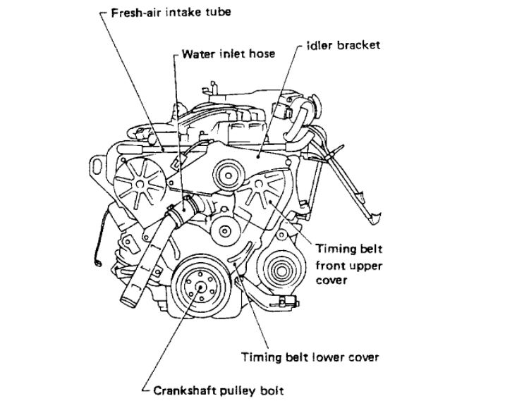 After removing timing belt, do not turn crankshaft and camshaft separately because valves will strike piston heads.
