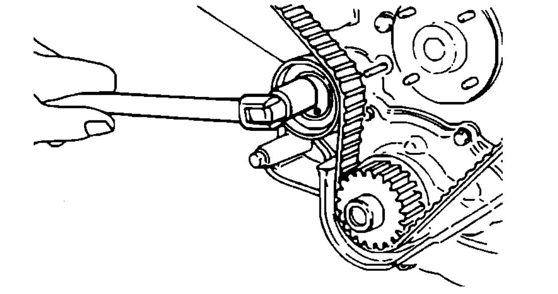 c Temporarily install crank pulley bolt on crankshaft so that crankshaft can be rotated.