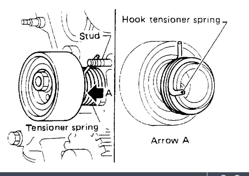 2. Install tensioner and tensioner spring.