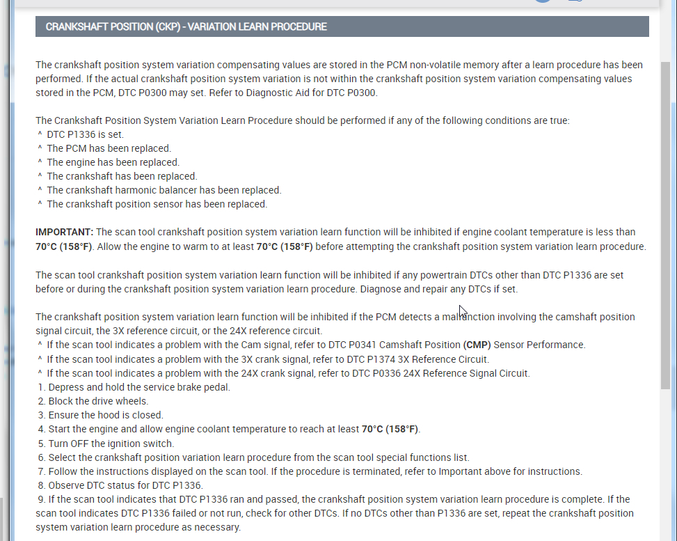 I am attaching the process on how to replace it and relearn the crank sensor.