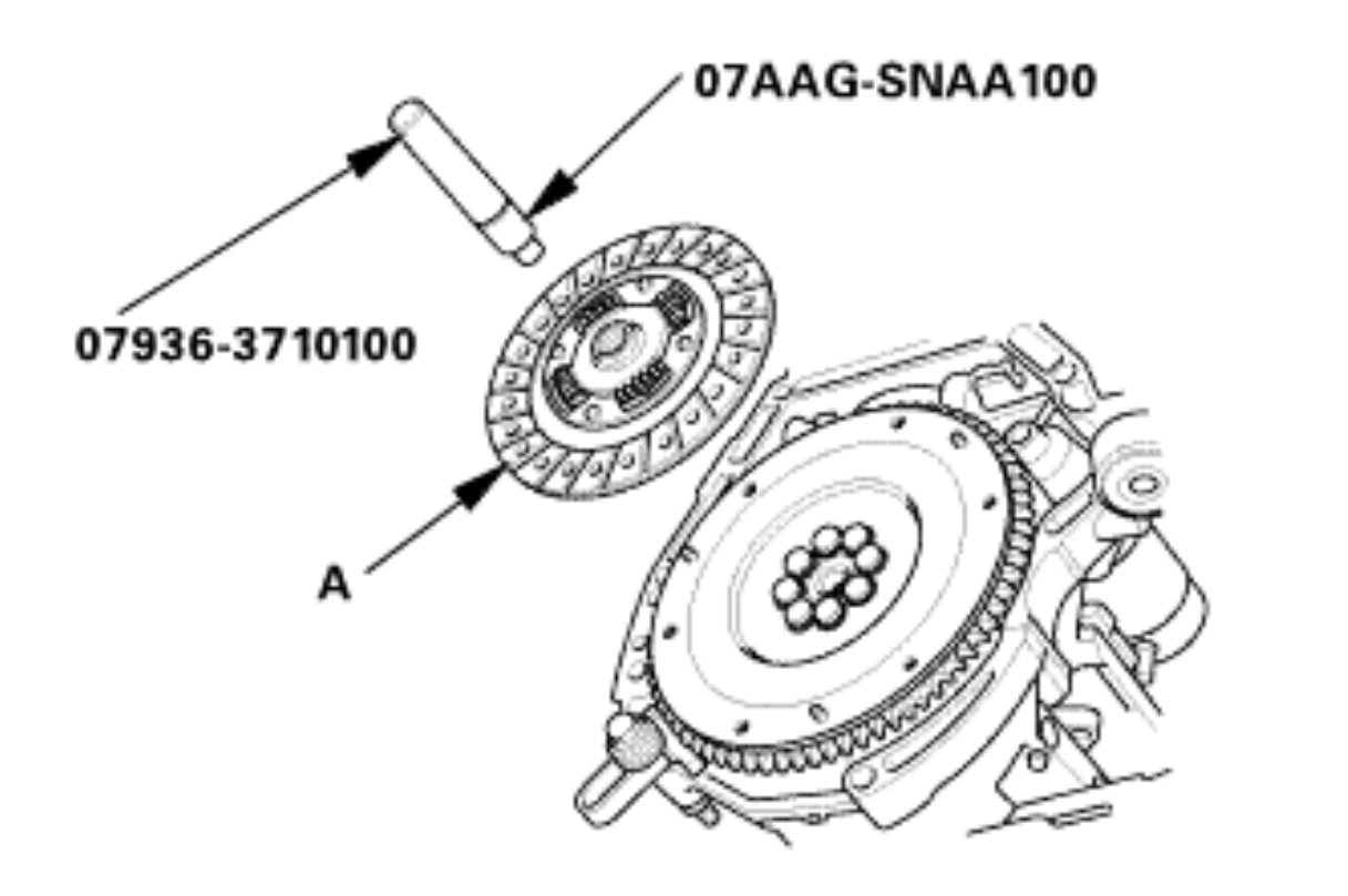 Remove the clutch disc (A), the clutch alignment shaft, and the remover handle.