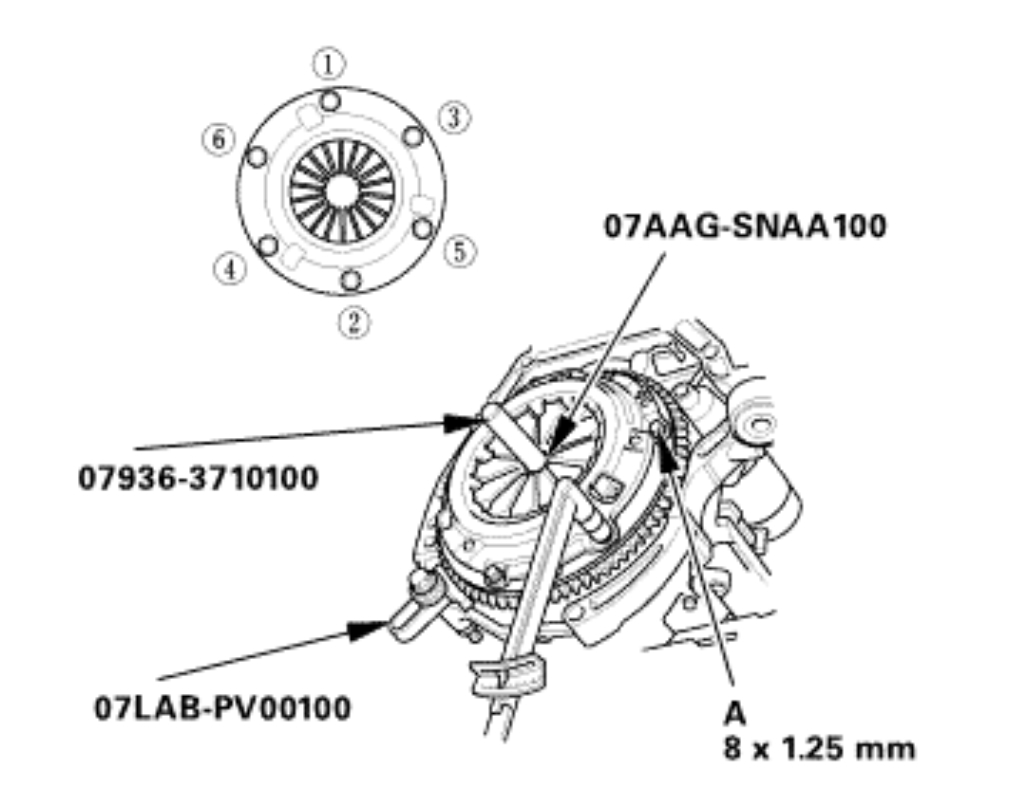 Torque the pressure plate mounting bolts (A) in a crisscross pattern.