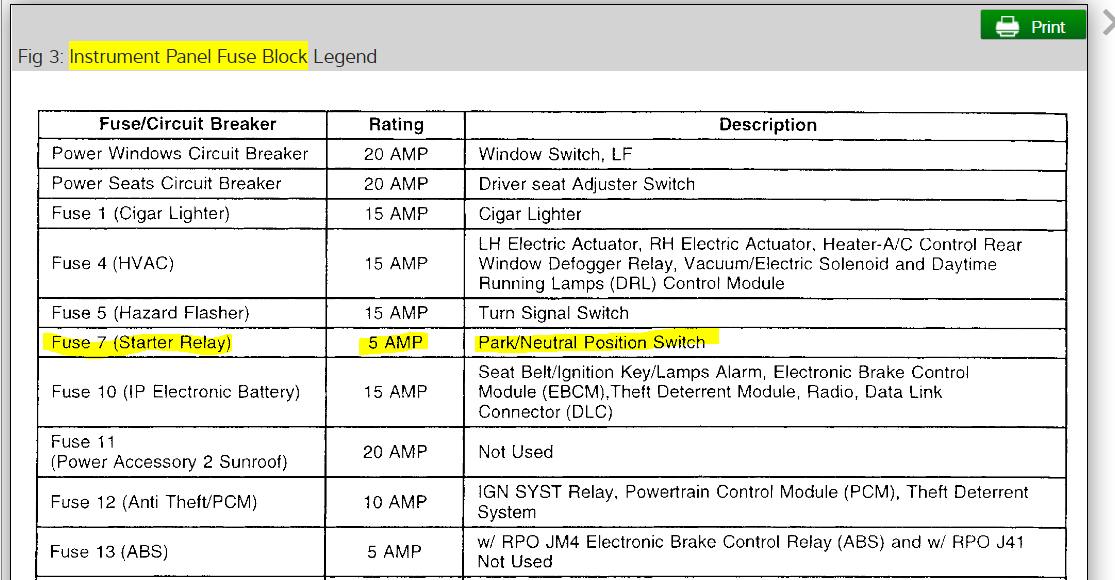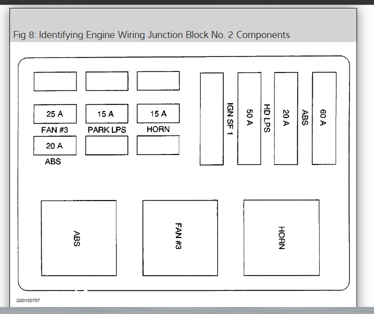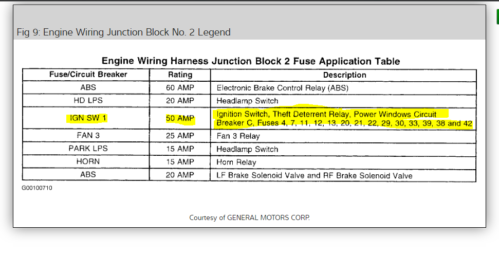 This could be a couple of different things. Let's start with checking the fuses and fusible links. Could you please check IGN SW Maxi Fuse (50A) in the Engine Wiring Harness Junction Block 2, Fuse #7(5A) in the fuse block, and the fusible link going from the alternator to the starter. In the diagrams down below I have included a Starting Circuit Wiring Diagram, and the locations, diagrams, and callouts for both of the fuse boxes where we want you to check a fuse. Please go through these guides and get back to us with what you are able to find out. We can go from there.