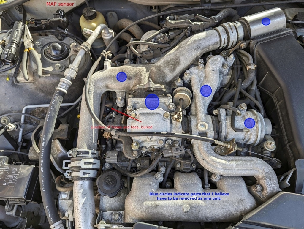 I've been told this is the hardest car in the world to work on, and after trying, I have to agree. Error code P0105 came up, after the car started idling rough. I tested the MAP/boost sensor and its companion solenoid, disconnected and cleaned all electrical contacts, cleaned MAF sensor, etc. There are hoses that I couldn't access under the air intake pipe (couldn't get that thing off!), but the mileage is so low, the vacuum hoses all look pretty new. After putting everything back together, I got a new code: P0300. Both codes point to any one of about 15 or more causes. I have readings from a basic code reader, if they're of any use. One thing that stands out: a reading of 25 on the short-term fuel trim - I know that's way too high. Also, the O2 readings seem really low. I have no money for expensive testing at a shop, so I'm pretty screwed. The only symptom so far is very rough idle. I haven't driven it since the CEL came on. Any thoughts? Thanks for your time and any help you can offer!
