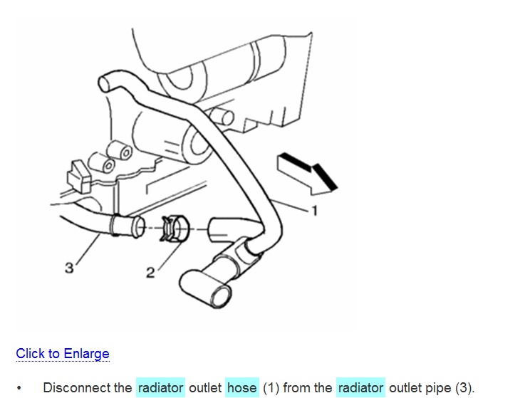 Disconnect the radiator outlet hose from the radiator outlet pipe.