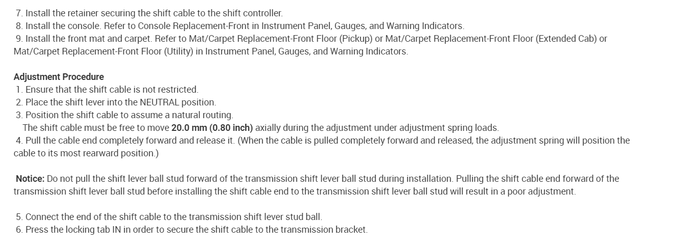 Check out the diagrams below to see how the shift cable is replaced.
