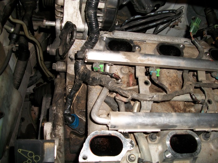 22.Disconnect the fuel feed hoses at the fuel rail.