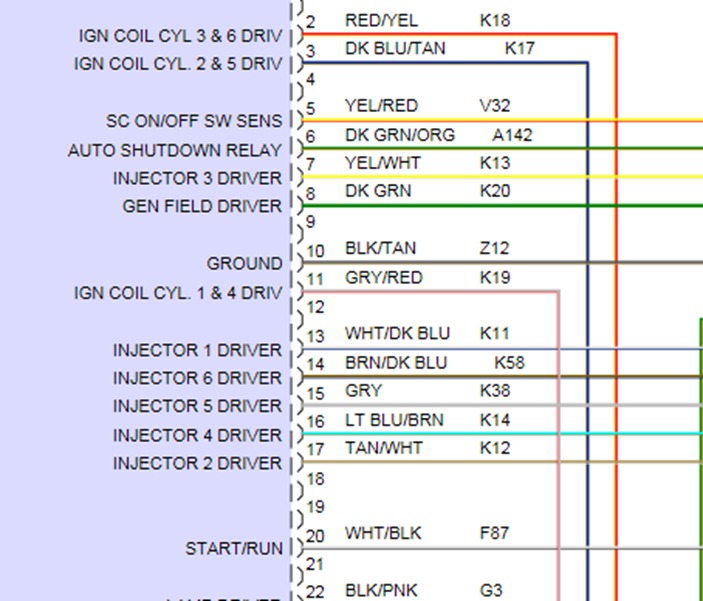 I am tracing injector wires back to PCM and am finding multiple incidences where they do not correspond to wiring diagram. For instance I am reading at (injector #2/ pin #1) is reaching pin#17 at PCM. (Injector #2/ pin #1) is also continuous to vehicle ground.