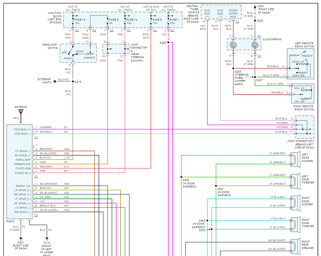 the sounds system has 6 speakers, 4 in the doors and 2 in the rear of the truck, here is the radio wiring diagrams so you can see how the system works and where the speakers are. Check out the images (below). Let us know if you need anything else.
