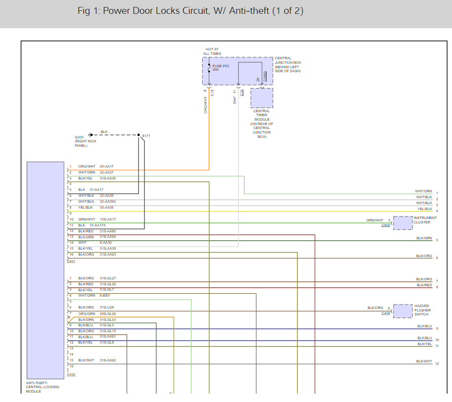 It looks like we need to test the fuse #F63 which controls the locking system. Here is a guide to help you test the fuse and the wiring diagrams so you can see how the system works: