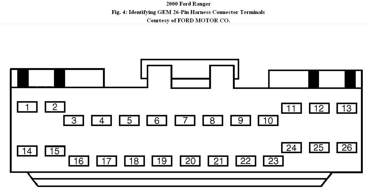 Turn ignition on, engine off. Connect jumper wire between ground and terminal No. 14 on GEM 22-pin harness connector. See Fig. 3. If 4X4 HIGH indicator light illuminates, replace GEM. Clear DTCs and retest system. If 4X4 HIGH indicator light does not illuminate, check condition of indicator bulbs. If bulbs are okay, repair or replace instrument cluster printed circuit. Clear DTCs and retest system.