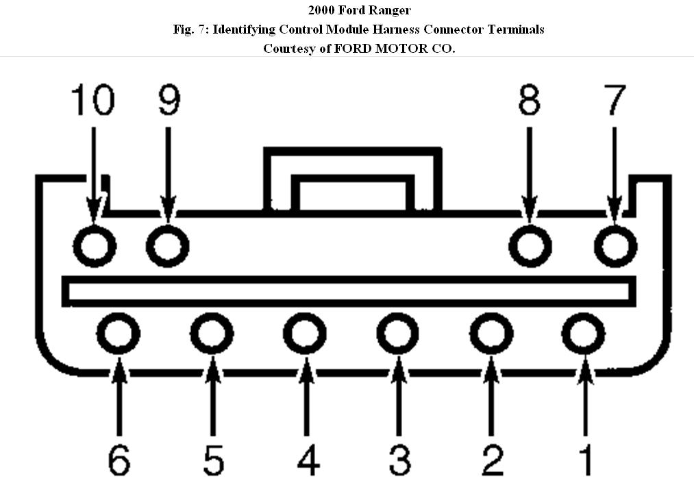 Using ohmmeter, measure resistance between ground and terminals No. 8 (Gray wire) and No. 9 (Brown/Pink wire) on shift control module harness connector. See Fig. 7. If resistance for both circuits is more than 10 k/ohms, go to step 49. If resistance for either circuit is not more than 10 k/ohms, repair short to ground in Brown/Pink and/or Gray wire(s). Clear DTCs and retest system.