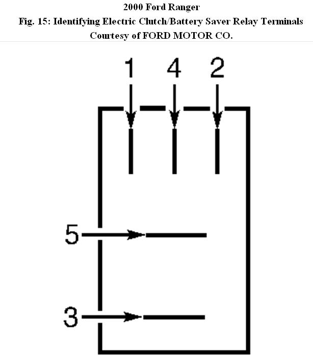 Using ohmmeter, measure resistance of Light Green/Orange wire between terminal No. 3 on battery saver relay socket and terminal No. 2 on electric clutch relay socket. See Fig. 15. If resistance is less than 5 ohms, go to next step. If resistance is not less than 5 ohms, repair open in Light Green/Orange wire. Clear DTCS and retest system.