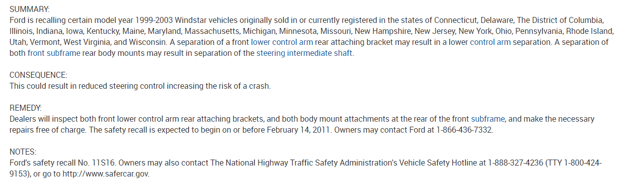 I have attached a copy of the recall. Take a look through it and contact your local Ford Dealer if this recall wasn't completed.