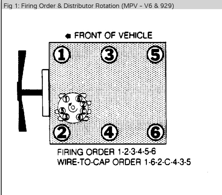 Firing order: V6 - 1-4-2-5-3-6 V6: - 1-2-3-4-5-6 Four cylinder: 1-3-4-2