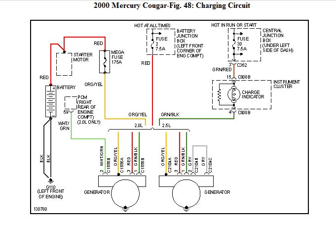 i have a 2000 mecury cougar..it has been broken down for some time now. i know it hasd something do with the alternator. it is not charging i finaly got the car to start up and took the battery terminal off and it shut off.a friend told me that some cars now if you take the terminal off they will shut off.i never heard that.since it has been broken down i have replaced the alternator atleast 6 times and it keeps burning them up or messing them up some how.i am not sure how to explain it but i think the wires are wrong for the alternator so i was wondering where i could find a alternator wiring diagram i looked everywhere and come up with nothing...can you help me please...i am riping my hair put not knowing what to do..thank you so much for your time.