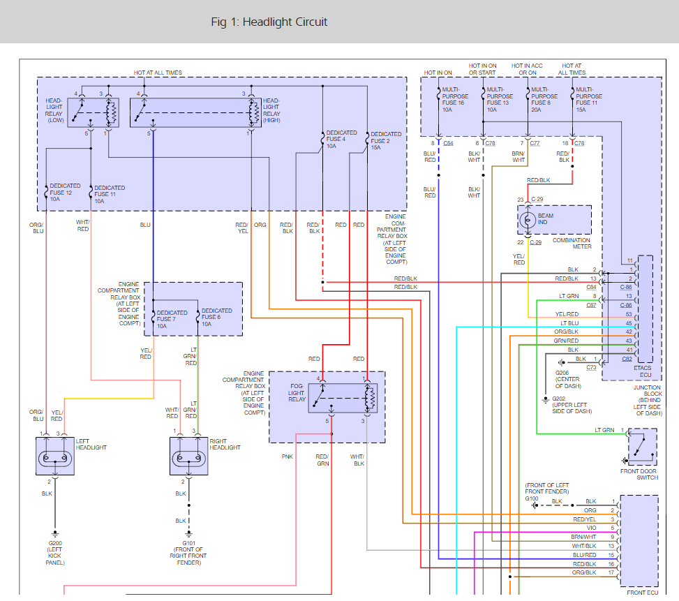 All of these were working fine just before this problem happened, whatever it is. All of these stopped working simultaneously. I have checked all of the fuses, replaced the turn signal lever, and replaced the ETACS behind the main fuse box in the dashboard but none of that made any difference. I cant figure out what all of these systems have in common. Is there a common ground wire, or do they all run though some connector in the wiring harness or what else could it be?