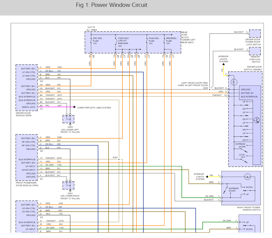 My car's door locks, power windows and courtesy lights don't work. The buttons on the door or key fob will not work. The radio stays on after you open the door also. Power mirrors do work. Checked and cleaned ground bus at the drivers kick plate. Checked wires in the door jam. All okay. Redid connection at tan and white wires under the drivers seat. What am i missing? Checked all fuses too.
