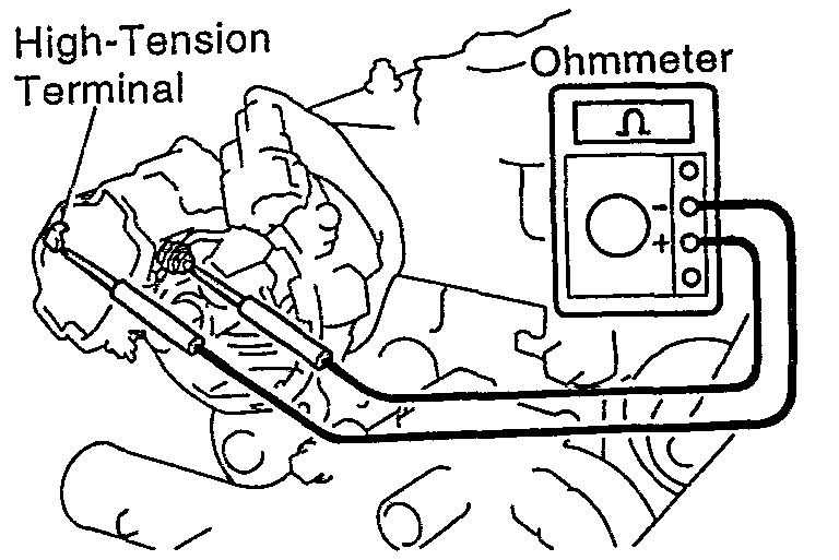 - Using an ohmmeter, measure the resistance between the positive (+) and high-tension terminals.