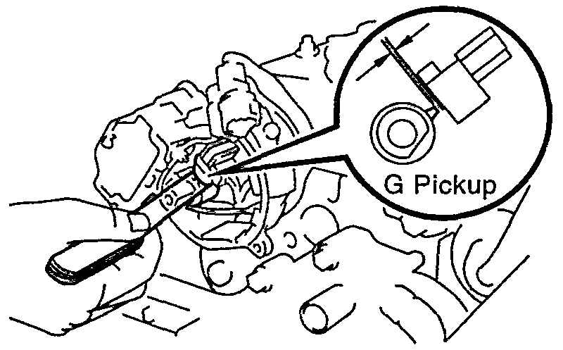 - Using a feeler gauge, measure the air gap between the signal rotor and pickup coil projection.