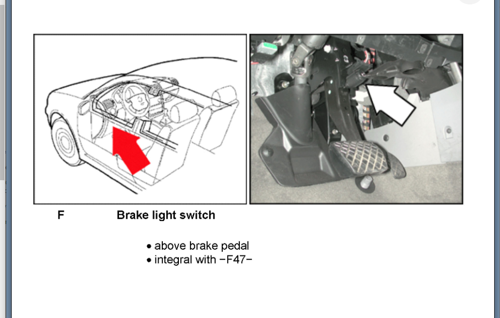 Hi I have a vw polo playa '00 and my brake lights are not working but the bulbs are not burnt out , a friend told me it is the brake light switch but can't seem to find it any suggestions ?? My brake lights were working before and now they don't but the bulbs are stiLl new , is replacing the brake switch a dyi job and what is the correct type switch to buy because there are two tips one with 2 pins and another with 4 pins