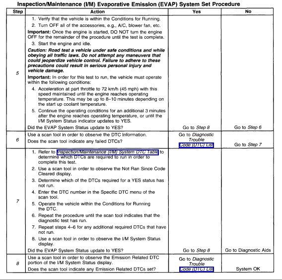 This step is to identify a first failure of a type B DTC. A DTC only appears on the I/M System Status display when it becomes a MIL illuminating DTC. This occurs on the second failure of a type B DTC. A first failure of a type B DTC will not allow the I/M System Status to update to YES. Refer to Diagnostic Aids.