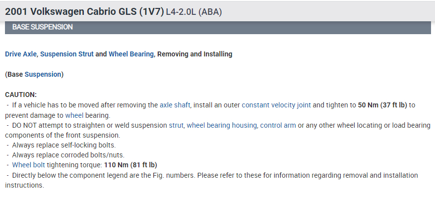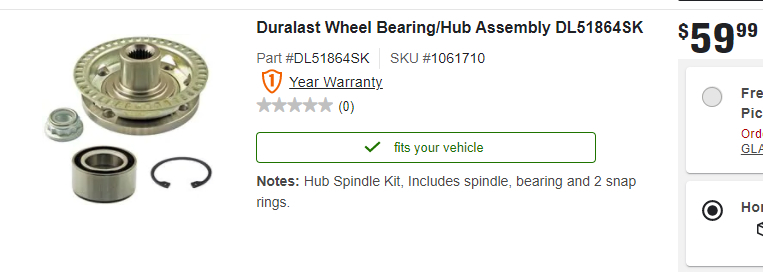 Next, back up, then select "Brake and Wheel Hub" to find the wheel bearings. This is the pressed-in design that isn't used much anymore. Normally a set of special tools is needed to replace this type of bearing. In most cases the old one has to be destroyed to remove it, so it can't be reused later or on the other side.