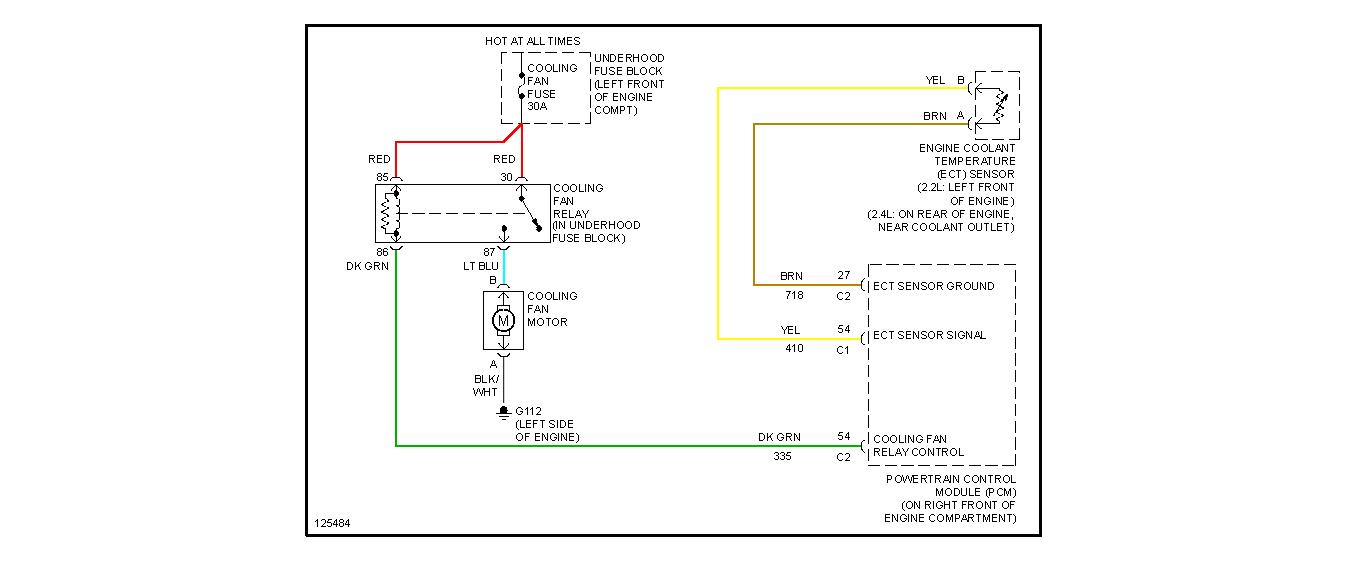 i have a 2001 chevy cavalier with a 2.2 engine, recently my radiator fan stoped working so i checked the relay and it was fine i ended up changing the temperature control sensor and still did not engage, so then i changed the motor on th fan and still no power, i bought a scanner because my check engine light is on and it gives me two codes the first one is p0480 and the other one is p0480? and the other thing i noticed is that the car is idleing by its self as if i where slightly pressing on the gas peddle it does this while its on park? what else should i be looking at is far as the fan? also i ended up changing the radiator i accidetnly punctured it.