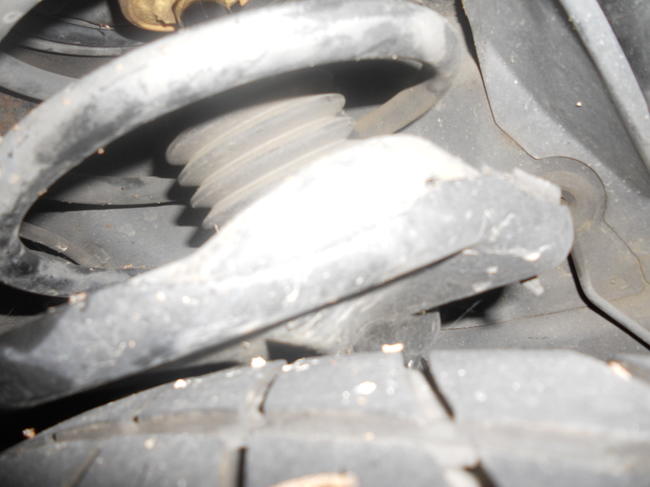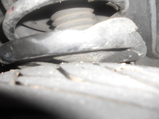 I understand that sagging springs and misadjusted camber can cause a problem with the clearance between the strut and the tire, but the wheel would have to be moved by a good two inches or so just so it wouldn't rub the bottom of the spring seat, and even then it would probably rub the side of the spring seat. Don't get me wrong, if you say that it is most likely the springs and camber, then I will go with it. I'm no mechanic by any stretch of the imagination. It just seems odd to me that the spring seat is so close to the tire, even with bad camber and springs. I've attached a couple more photos. Thank you for your help, it is much appreciated.