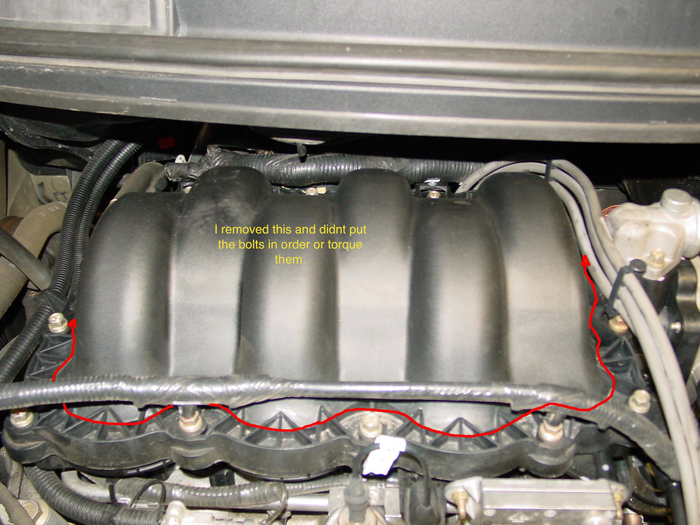 i was changing the spark plugs and i removed the plenum i think a black plastic top cover, i forgot how the bolts went so i just put them on, but now the my van idles rough i was wondering if the bolts needed to be torque and had to go in order, thanks