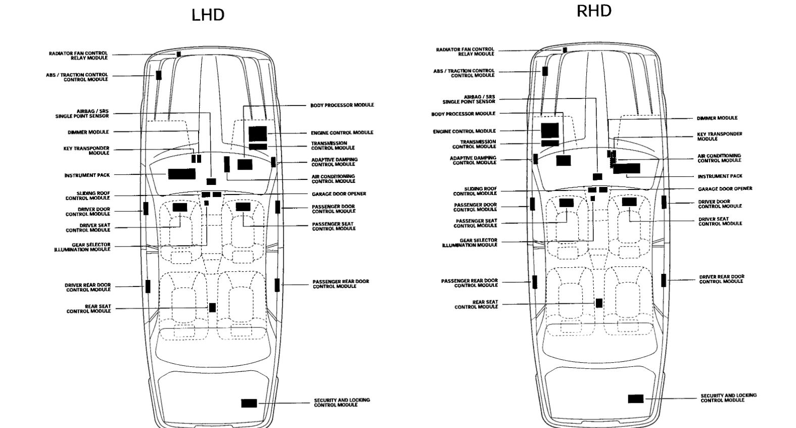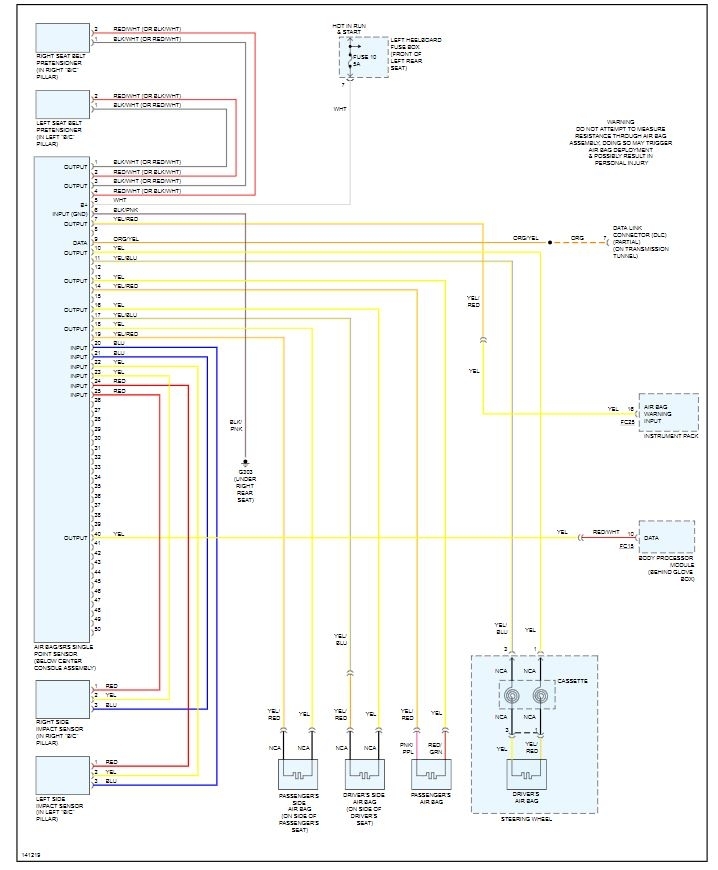 Attached below you will find a diagram of the module locations for your vehicle as well as the wiring schematic for the SRS system